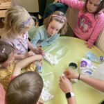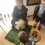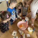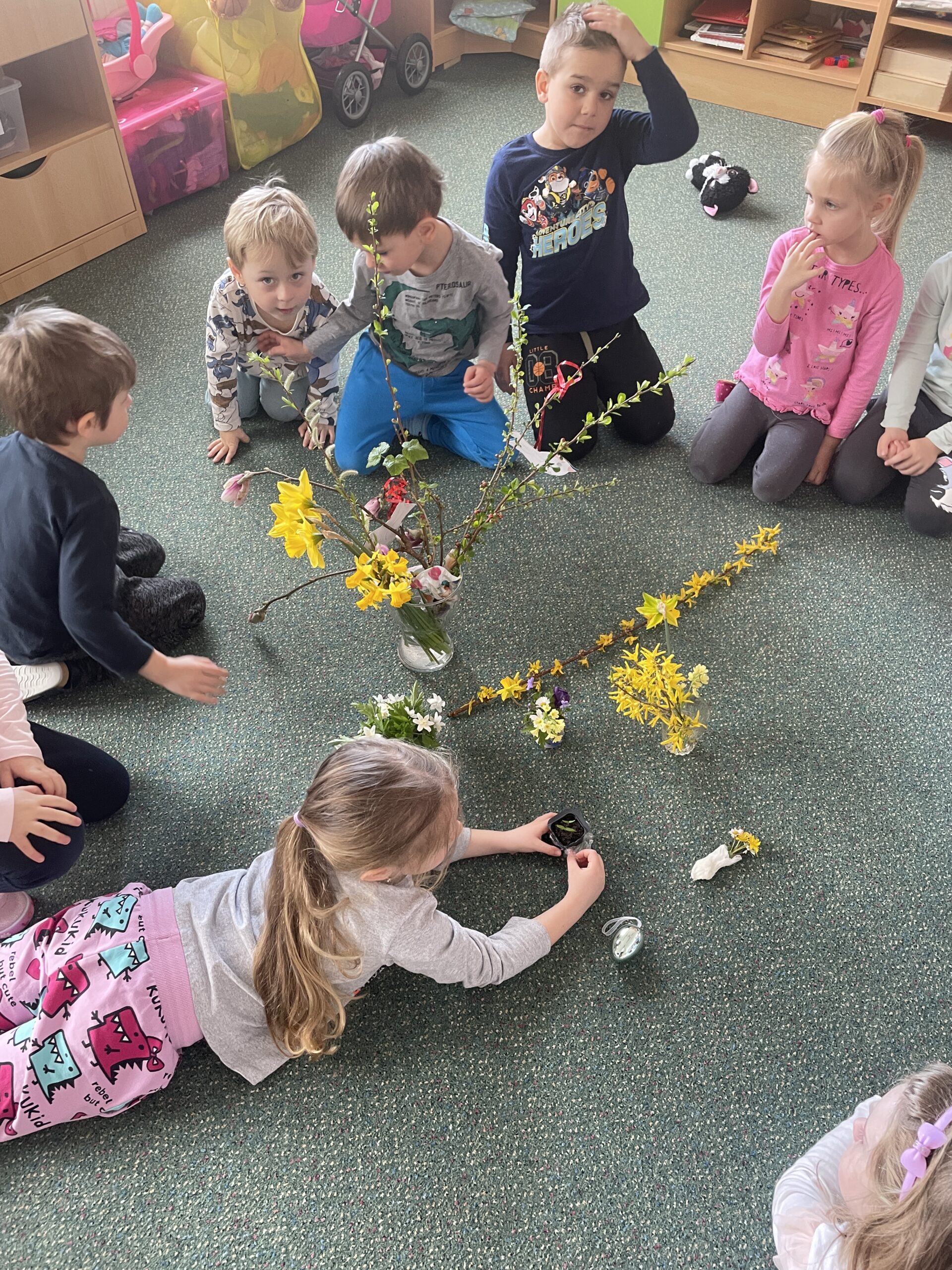 … a to nejen živočichové v přírodě, ale i ti naši. Užíváme si krásné jarní počasí, pozorujeme změny v přírodě, proměnili jsme se v zahradníky, seli jsme a sázeli bylinky, osení do velikonočních zajíčku, které jsme si vyrobili jako dekoraci do našich domovů. O velikonočních svátcích jsme se také leccos dozvěděli, navštívili jsme výstavu v Domově Sv. Josefa. Stalo se již tradicí, že z výstavy odejdeme s nějakou dobrůtkou a tentokrát to nemohlo být nic jiného než beránek… a moc dobrý. Protože jsme děti šikovné a mlsné, beránky jsme si upekli a samozřejmě za odměnu i snědli😊