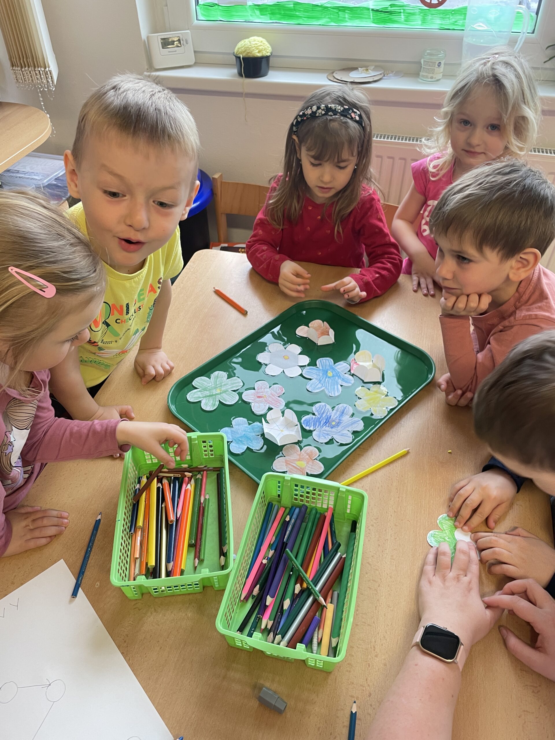 Děti poznají spoustu jarních kytiček. Zjistily, že není pravidlem, že kytička voní, květinky malovaly, obtiskovaly dle fantazie, vzniklo spoustu nádherných prací. Broučci vědí, jak se rodí motýli, vývoj si prožily nejen při práci s knihou Hladová housenka, ale i na vlastní kůži pohybovým ztvárněním za doprovodu hudby. Jako včelky opylovaly kytičky, sbíraly nektar, kladly vajíčka do pláství, chutí poznávaly med. Mají moc rády záhady a pokusy, proto jsme jich hned několik vyzkoušeli. Díky vodě nám rozkvetly kytičky, ale i vyrostly housenky, jako badatelé jsme prosvěcovali obrázky a poznávali hmyz a brouky. V rámci budování pozitivního vztahu k přírodě, což je jeden z hlavních cílů naší MŠ, jsme se zapojili do akce Ukliďme Ropici, oslavili jsme Den vody i Den Země. Foto zde: https://zsams-ropice.cz/materska-skola/vypravy/