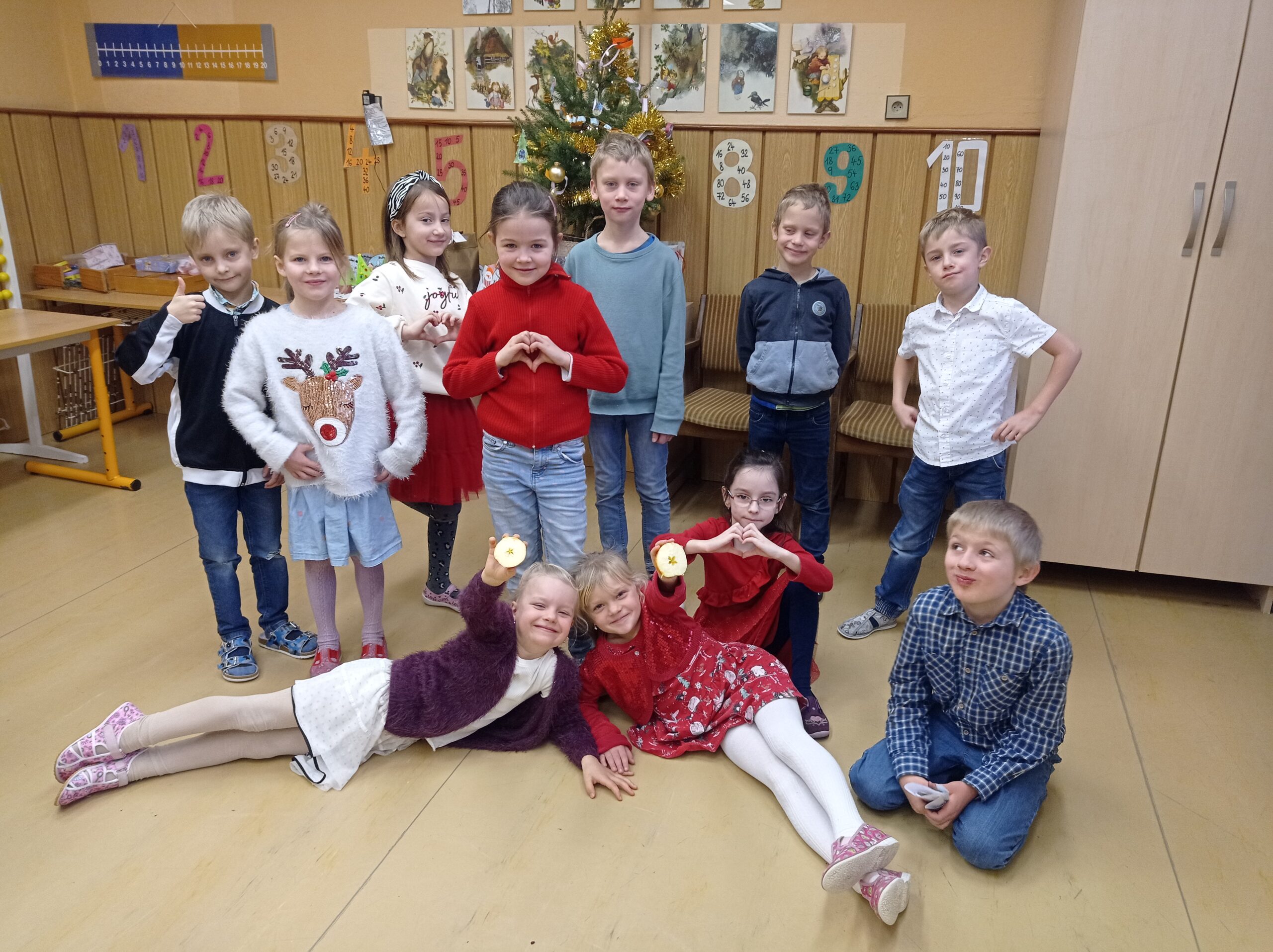 Dnia 20 grudnia odbyła się w szkole wigilijka. Dzieci przyniosły ciasteczka i prezenty, którymi się wymieniły. Na wigilijce opowiadaliśmy sobie o tym, jak kto spędza Wigilię, łamaliśmy się opłatkiem, śpiewaliśmy kolędy.